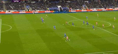 第27分鐘,達(dá)姆斯高傳球,姆貝烏莫內(nèi)切后兜射入死角,布倫特福德2-0。