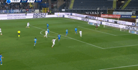 第43分鐘,盧克曼拉球過掉門將推空門,亞特蘭大3-0。