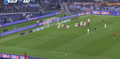 第88分鐘,回頭望月,克里斯坦特頭球后蹭破門,羅馬4-0領(lǐng)先。